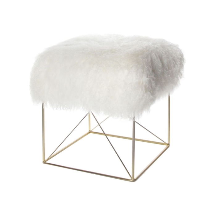 Bring high end style and luxury into your home with the Bagley ottoman, combining hard crisp lines of tubular and rectangular gold painted metal with campaign style feel and the softness and visual appeal of Tibet wool. This accent piece will surely be a topic of discussion, as well as a place for comfort. Bring your home the trendiest piece and free yourself to seat on a cloud.